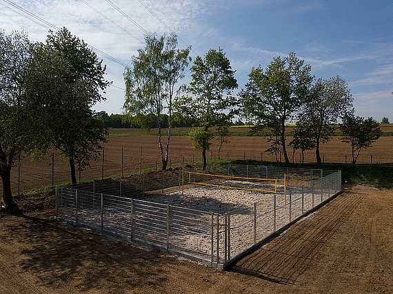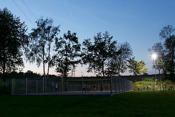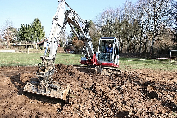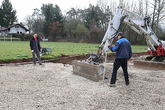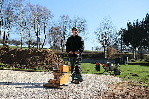 Fr 06.04.2018 Abrütteln der Schotterfläche und anpassen des Geländes um das Beachvolleyballfeld