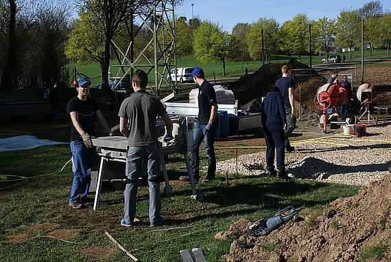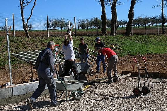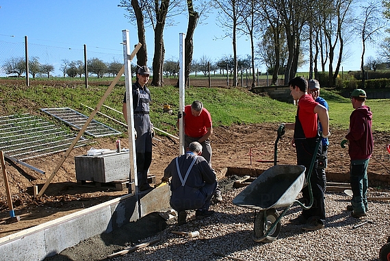 Sa 14.04.2018 Pfosten und Rabatten setzten (6t, 75m Rabatten; 15t Beton(von Hand angemacht); 34 Pfosten )