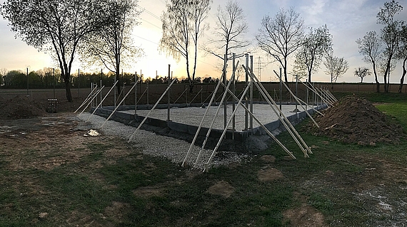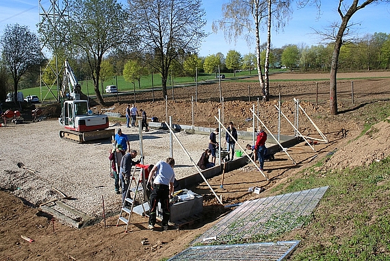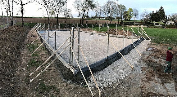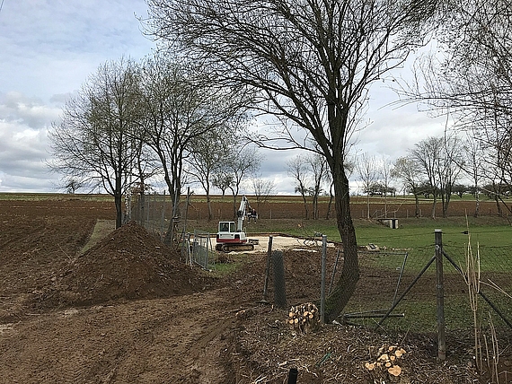 Di 17.04.2018 1/2 der Zäune angeschraubt und auffüllen des Baugrabens