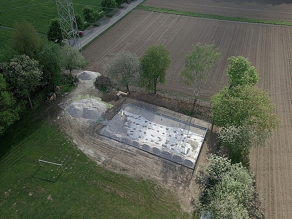Sa 21.04.2018 Schlitze versiegelt, Fließ ausgelegt und den ersten Sand ins Feld gekippt