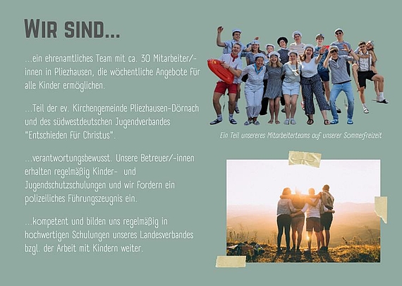 - eine Gruppe, in der sich gut geschulte ehrenamtliche Mitarbeitende mit ihren Begabungen einbringen und gefördert werden