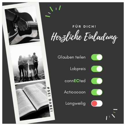 Gemeinsam mit anderen jungen Menschen eine nice Zeit haben: Jesus besser kennenlernen, deep talk, chillen, spielen und quatschen.